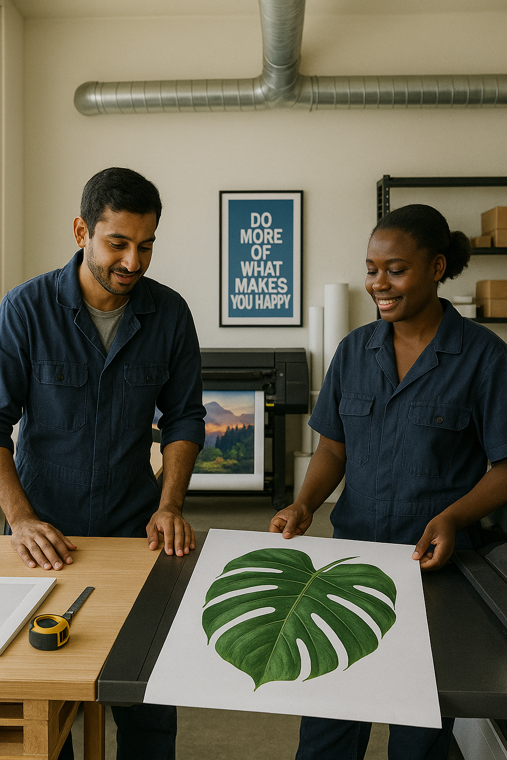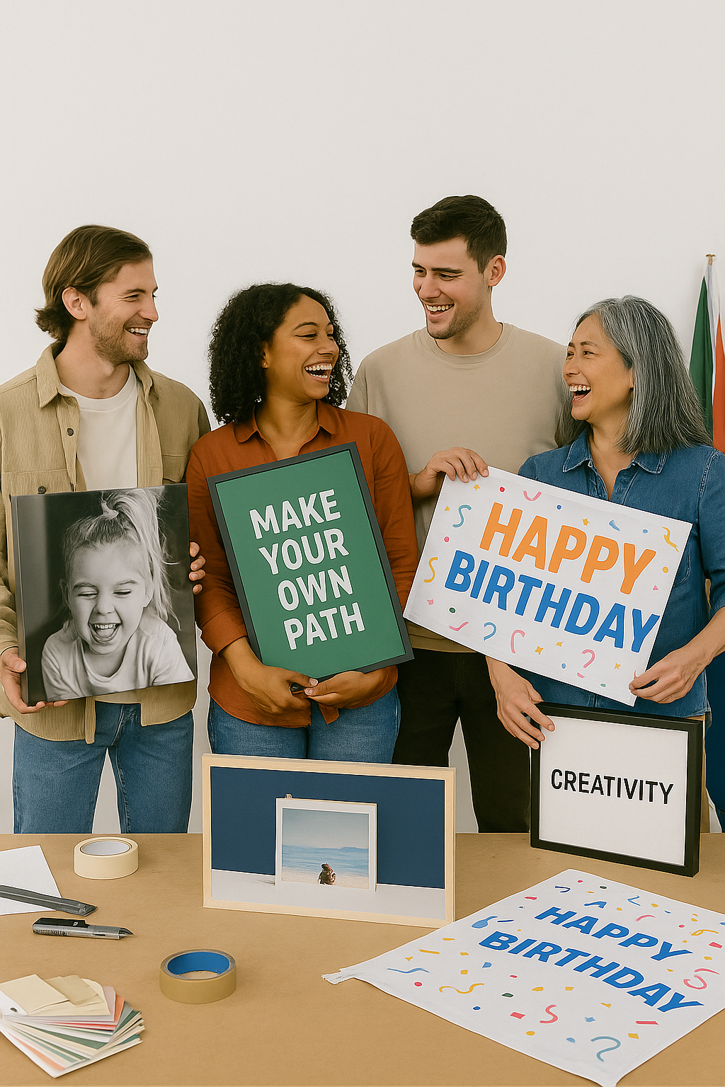 We’re more than just a printing service — we’re your creative partner. Whether you’re decorating your first apartment, launching your brand, or surprising someone with a thoughtful gift, we’re here to bring your ideas to life. Join us in celebrating expression, one print at a time.